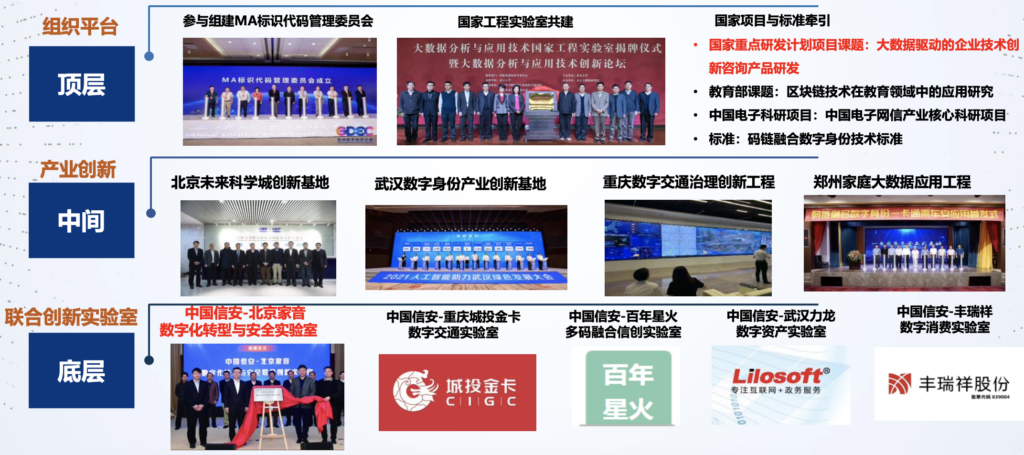 以企业联合实验室为基础自下而上, 以国家级组织平台自上而下,打造数字身份产业创新基地。